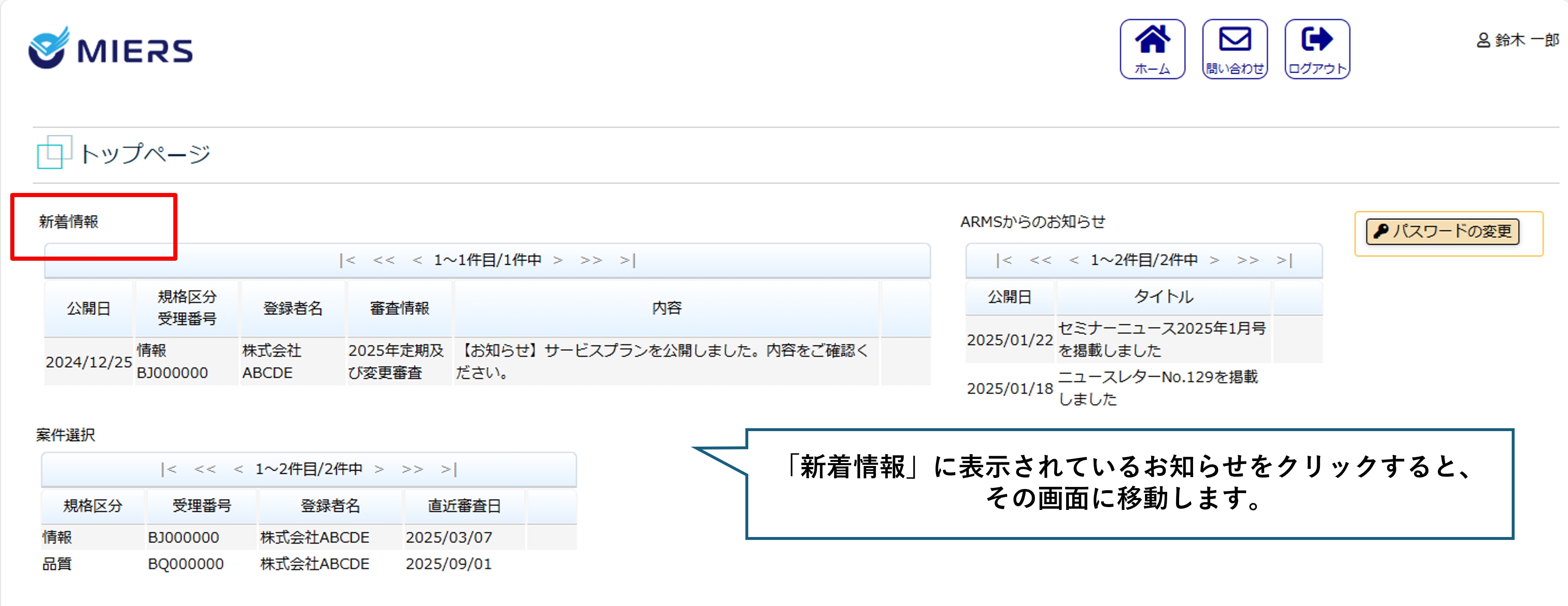 ※閲覧できる審査は、MIERS導入以降の審査が対象となります。 それ以前の審査情報は見ることができませんので予めご了承ください。