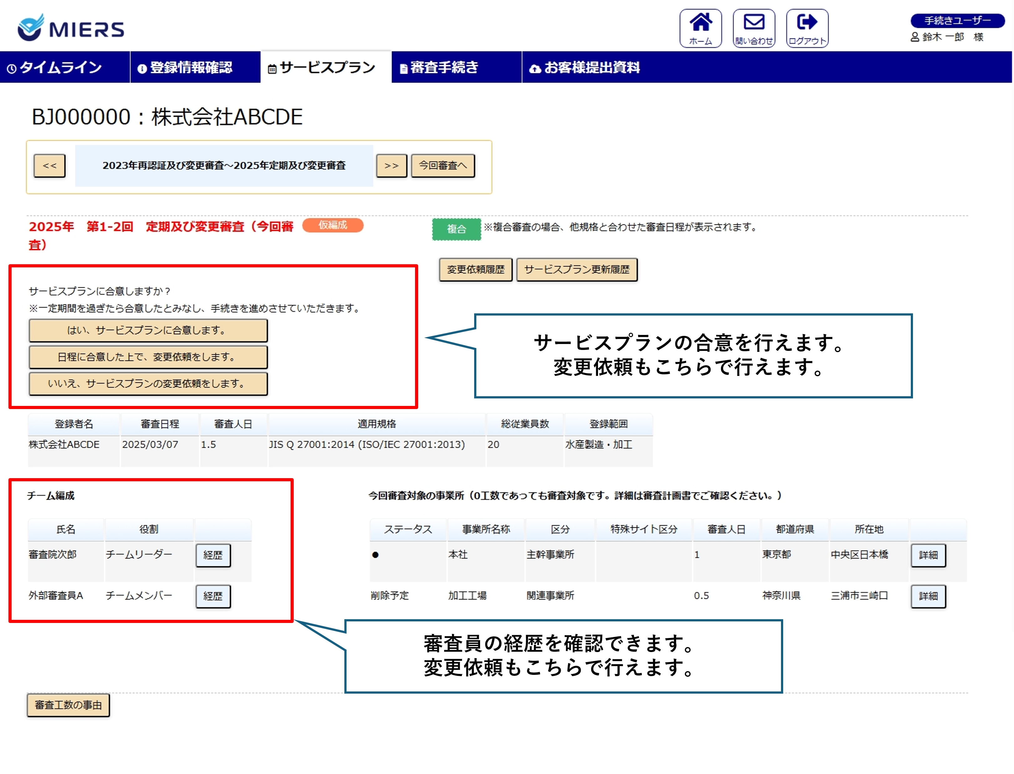 また、審査日程、審査チームメンバーに不都合がある場合は、変更依頼をすることも可能です。