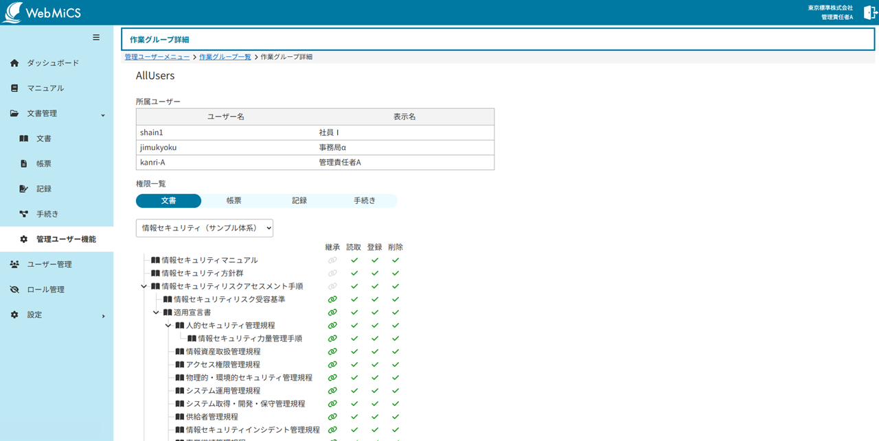 会社で保有している文書類を、WebMiCS上で体系的に管理することで、